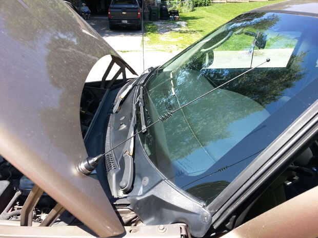 Monte el soporte de la antena sobre el borde posterior de la campana. Compruebe que no afectan negativamente su vista desde el asiento del conductor. También, compruebe cuidadosamente que la campana todavía puede abrir sin problemas de separación de la antena.