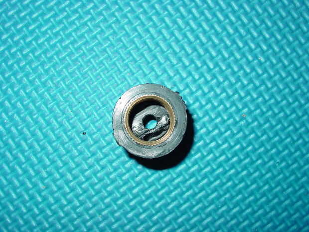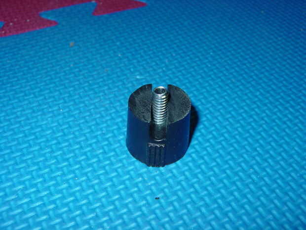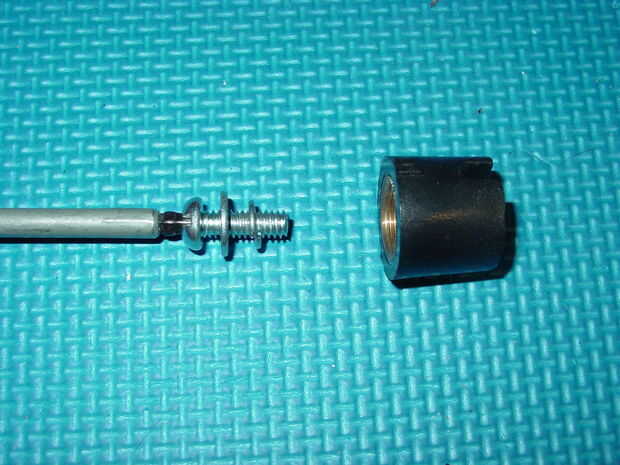 Coloque una arandela y luego una arandela en el tornillo de máquina de 1/4-20. El tornillo en el clip desde el lado del soporte roscado. Empuje duro, como el tornillo estará cortando su propia rosca en el plástico.