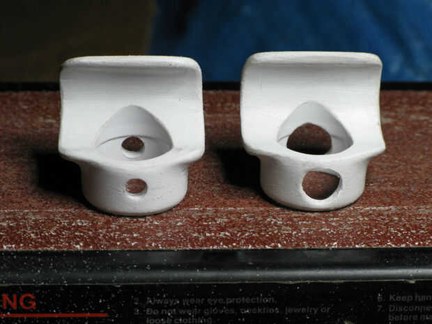 Pieza superior: Marque los orificios en la misma posición en ambas piezas para que ellos se alinearán. Perfore un agujero de 1/4" a través de la pieza superior.