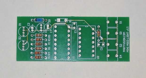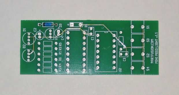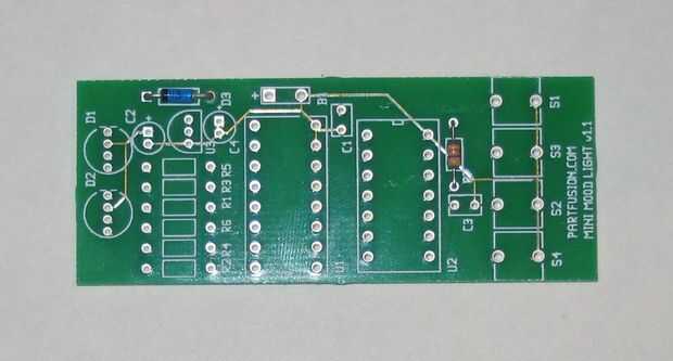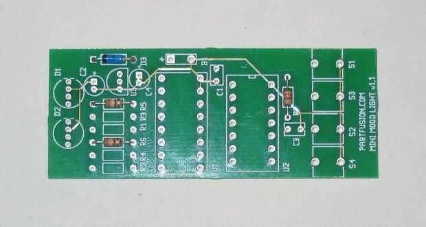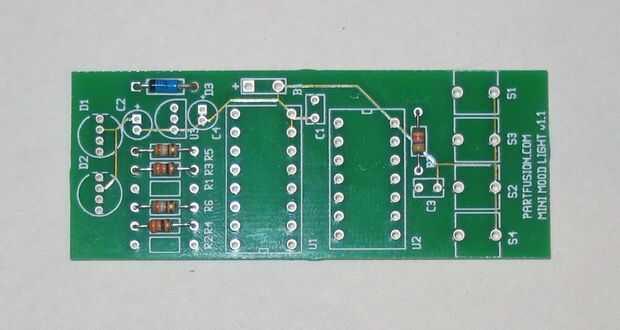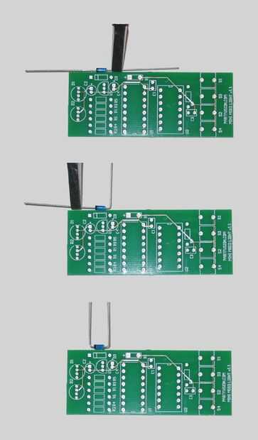 Los cables son doblados unos milímetros del cuerpo e insertados en los agujeros de la placa de circuito. El alambre se suelda entonces en el lado opuesto del tablero para el cuerpo y cualquier exceso de cable se corta con los cortadores.