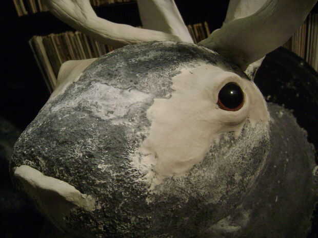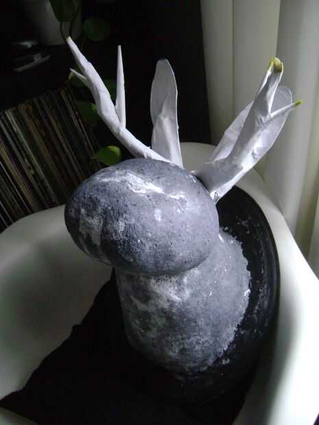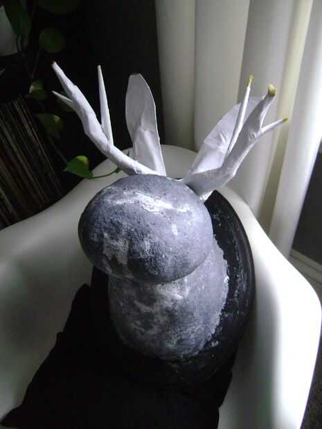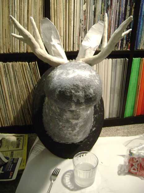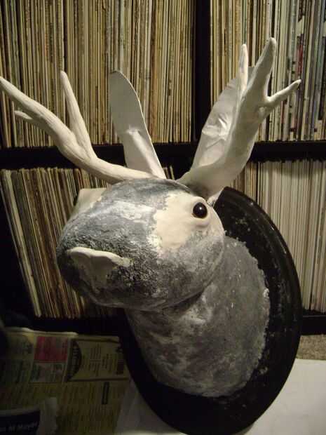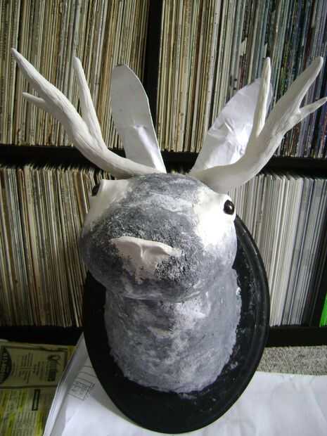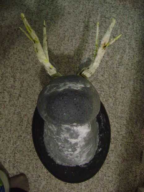 Rollo de papel en tubos largos alrededor de las antenas de alambre y forma en las cornamentas con la ayuda de alguna cinta de enmascarar. Aplicar una capa de tiras de papel mojado en pegamento para mantener unida a la forma de los cuernos.