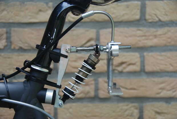 El "dedo mecánico" funciona con el desplazador del engranaje montado en el manillar. La instalación necesita algunas modificaciones "cosméticas".