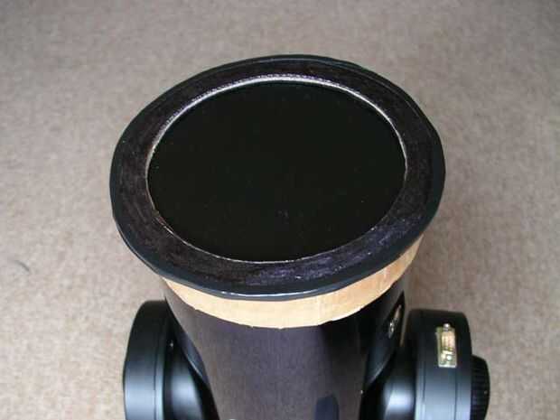 este es el bosquejo para una fácil de implementar, aunque muy confiable montaje simple (titular) de la película de filtro Solar, que está ampliamente disponible como un DIY telescopio kit (como película de seguridad Solar de Baader Astro Thousnad Robles negro polímero película Solar, película de Mylar recubierto, etc.)