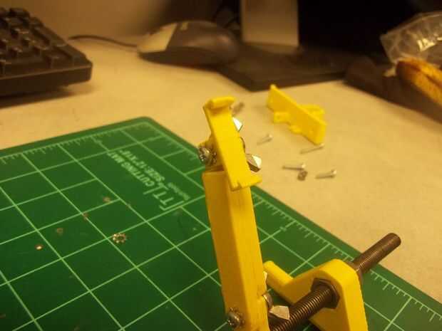 Fije el montaje de la misma manera que los brazos de extensión fueron Unidos a los ganchos de la plataforma. Es decir, con un M3x14 máquina de tornillo, arandela y tuerca de mariposa.