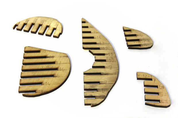 Primero preparar las piezas para el montaje mediante la eliminación de cualquier soporte de papel.  El cuenco de la mano tiene 14 rebanadas radial vertical que encajan en las 18 secciones horizontales.  Las piezas verticales tienen cortes paralelos en ellos (Figura 3) y están marcadas con una "Y", y las piezas horizontales tienen cortes radiales (figuras 1 y 2) están marcadas con una "Z".  Identificar las piezas verticales y horizontales y separarlos en dos grupos.