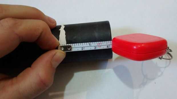 Medido y había marcado (blanco trabajos mejor) el tubo de plástico cerca de 4 centímetros (1 1/2 pulgadas) del borde usando una regla, no tiene que ser muy preciso. Cuanto menor sea la mejor, pero tiene que ser lo suficientemente grande como para el soporte de linterna para aferrarse.