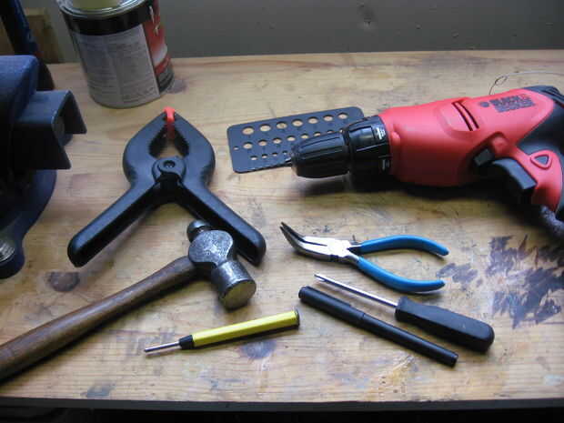 Versión 3 requiere un destornillador de cabeza Phillips Taladro broca sizer, una abrazadera de resorte grande y un par de alicates de punta doblada.