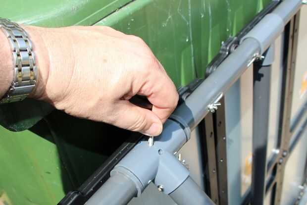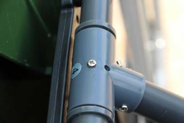 Los paneles solares se sujete al marco con mismo estilo tornillos y tuercas que se utilizan para montar el cuadro, sólo que son más largos e incluyen una pequeña arandela plana. Los paneles que cada uno conectado con cuatro tornillos, 2 en la parte superior y 2 en la parte inferior.