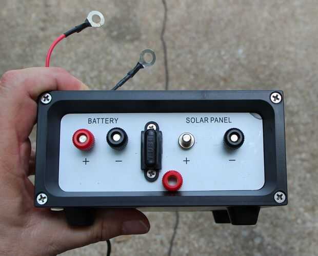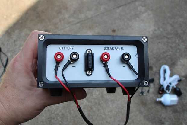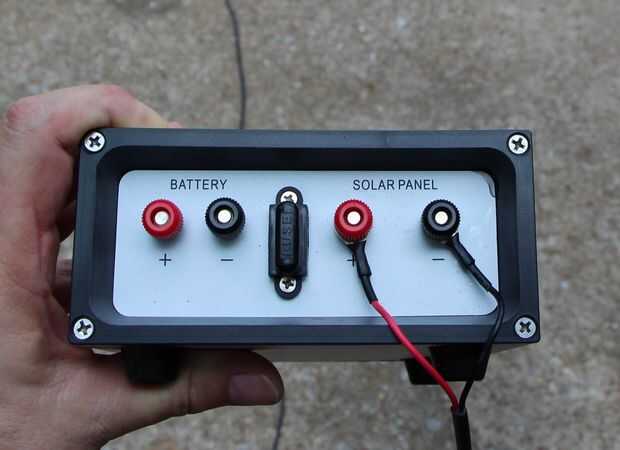 El extremo terminal del anillo del cable se conecta al lado de la pared posterior del controlador de carga panel solar. Código de color de todo y al igual que la primera parte no hay "herramientas".