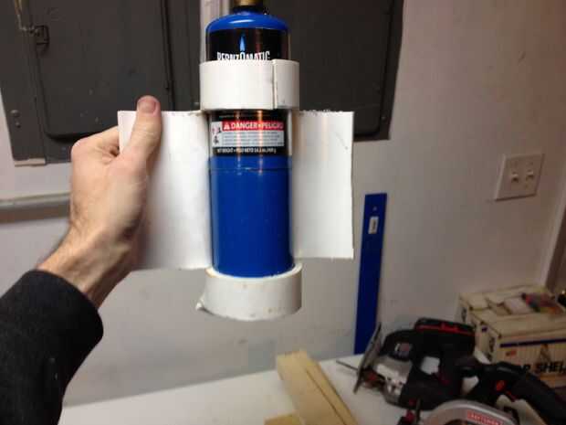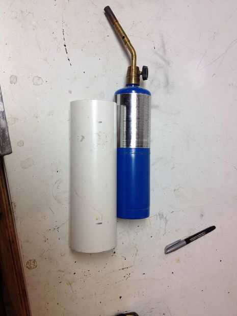 I fijar el tubo a una tabla y utiliza una pistola de calor para ablandar y desenrolle las secciones de corte medianas. Una vez más, que estaba diseñando sobre la marcha. Este proceso de acoplamiento no es necesariamente necesario para la sección gris cuando se utiliza la plantilla. Será sin embargo, necesita aplanar la parte inferior que puede ser doblada bajo el anillo inferior para apoyar la antorcha.
