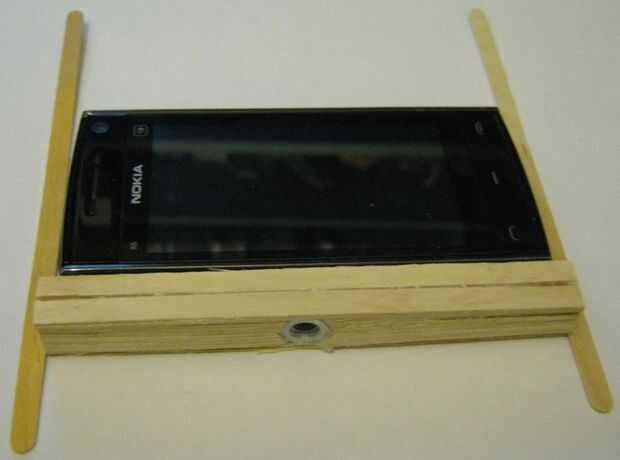 este es un instructivo para un stand sencillo y eficaz para su uso con un teléfono con cámara. Fue hecho con piezas de desecho de madera que eran demasiado pequeños como para ser utilizable en otros proyectos, por lo que es verde y rentable. El sopor