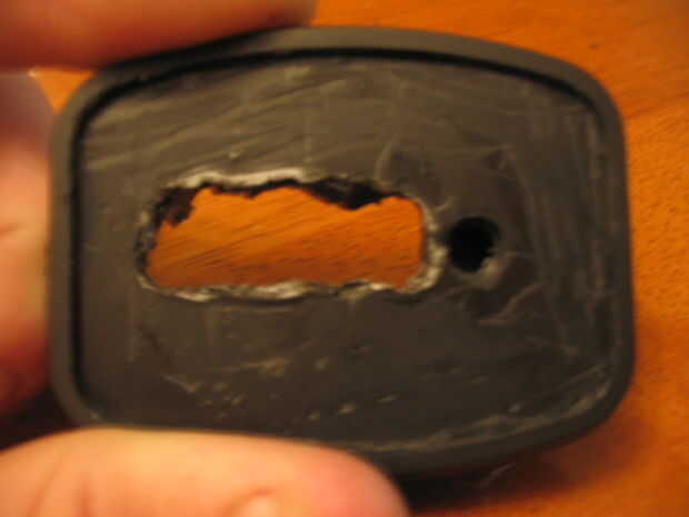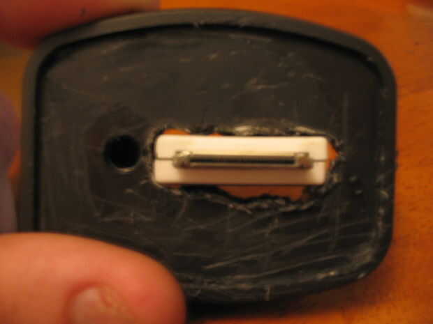 Corté un agujero grande en la plataforma para el conector. El agujero se compensó un poco para evitar que el lugar donde se encontraba el nódulo de la primavera. Asegúrese de que hace un ajuste apretado que lo ayudarán al conector para mantenerse seguro. ¿Cómo se puede hacer el agujero, usted puede preguntar? No digo aquí del miedo de rechazo por abuso de herramientas: 0