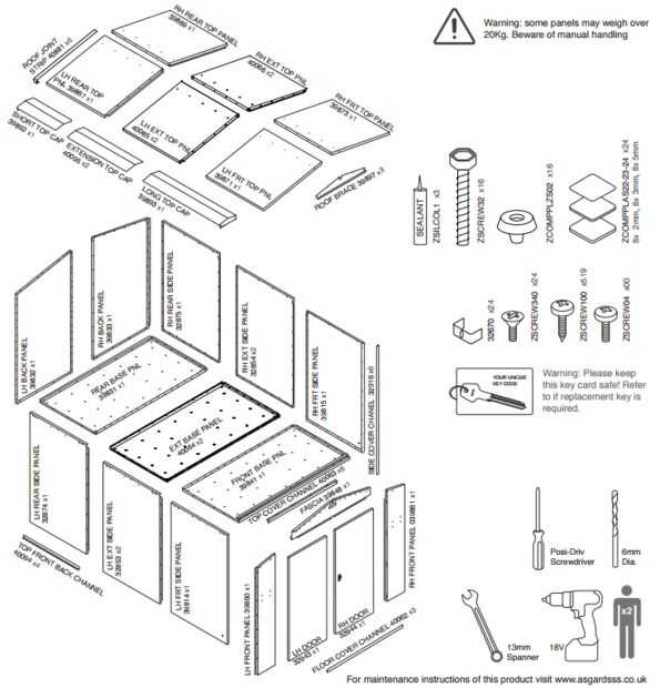 Ahora que tienes una base firme de plana, puede comenzar a montar la caseta desde el piso hacia arriba. Las herramientas que necesitará son poder controlador POSI-DRIV destornillador, taladro de mampostería de 6mm diámetro y una toma de 13mm o llave.