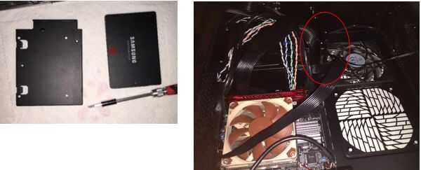 A continuación, instale su opción de almacenamiento de información en el caso. Muchos de los casos vienen con soportes especiales u otros métodos ingeniosos. Esto dependerá la elección del caso. Esta compilación tiene instalado a través de un soporte de almacenamiento.