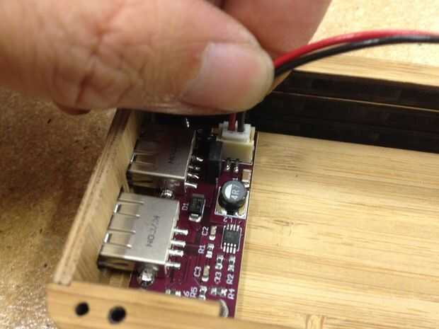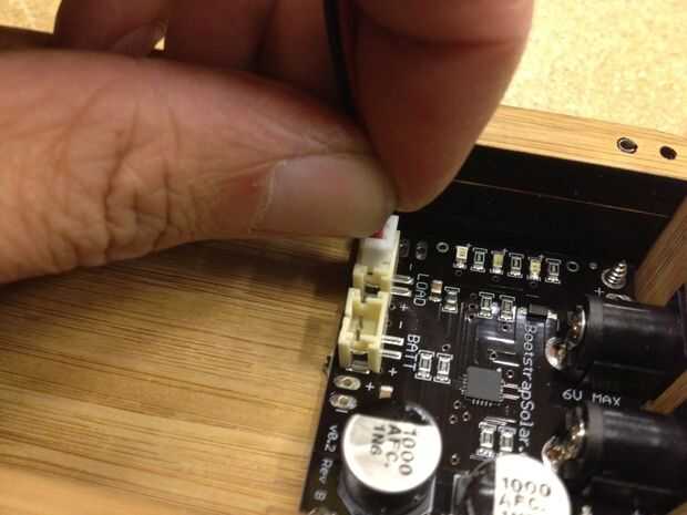 En el circuito cargador solar, asegúrese de que el cable se enchufa en el conector marcado con "Carga" (el zócalo más cercano a las secciones de pared).