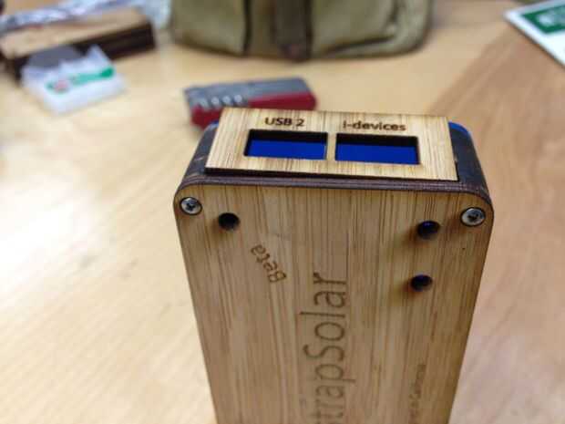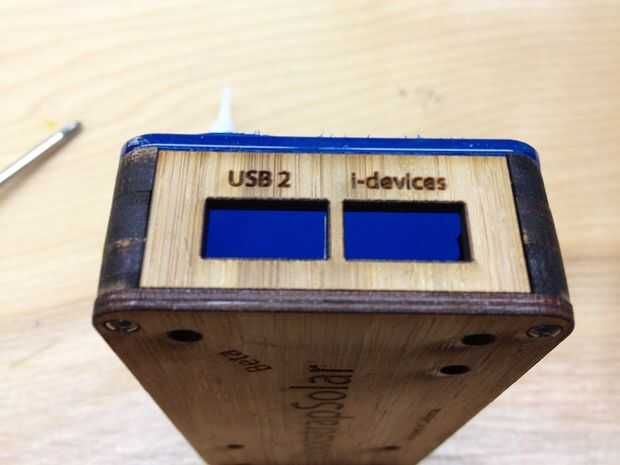 5. Coloque en el bisel. Asegúrese de que el texto muestra que la tapa de plástico es "arriba" y la placa inferior de bambú es "inferior".