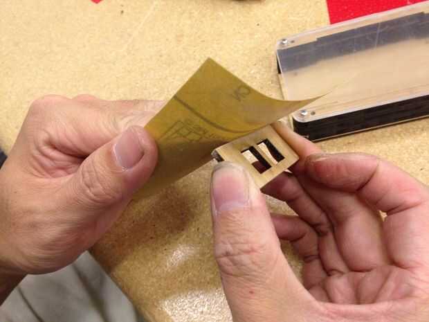 3. si no cabe, utiliza la lija para pulir los bordes hasta que encaja.