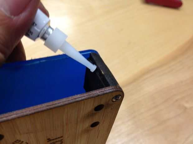 4. Aplique una gota de pegamento a la media de las secciones de pared. No poner pegamento en las esquinas, o inadvertidamente podría pegar las placas superior e inferior.