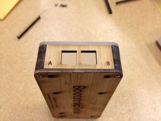 5. Coloque el bisel con "A" y "B" hacia fuera y más cerca de la placa inferior de bambú.