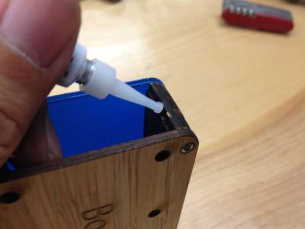 4. Aplique una gota de pegamento a la media de las secciones de pared. Otra vez, no poner pegamento en las esquinas para evitar el pegado de las placas superior e inferior.