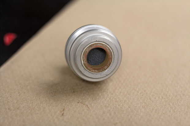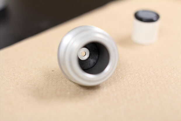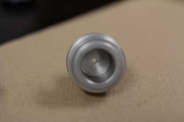 Ahora, toma el conjunto del paso anterior y fuerza en el cierre hacia adelante como se muestra en la imagen 5. El espaciador de popa demora, hueco, debe mirar hacia atrás, hacia el propulsor, otra vez como se muestra. Tendrá una fuerza para conseguir el oring para comprimir correctamente para que la pila encajar en su lugar. Esto se hace más fácilmente colocando la pila abajo en el oring de la tabla para arriba y entonces usando tu palm (estando) para forzar el cierre sobre la pila.