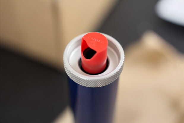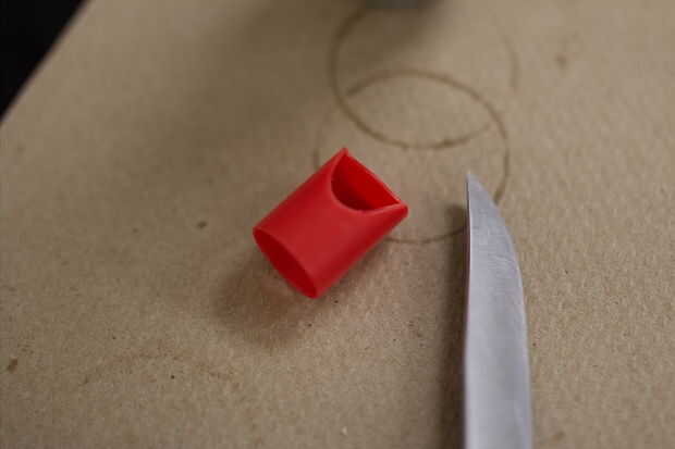 Use un cuchillo para recortar la esquina de la tapa de plástico que se coloca sobre la boquilla y deslizarla sobre la boquilla como se muestra para el almacenaje. Cinta el encendedor al lado de la caja motor, etiquetado con el tipo de motor y coloque la tapa roja grande sobre el cierre hacia adelante (sólo un poco lo poco de un dolor para sacar. Polvo negro debe ser almacenado por separado y añadido en el campo.