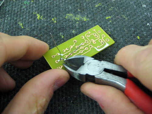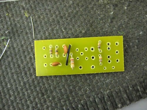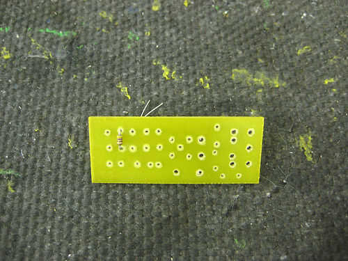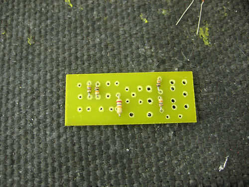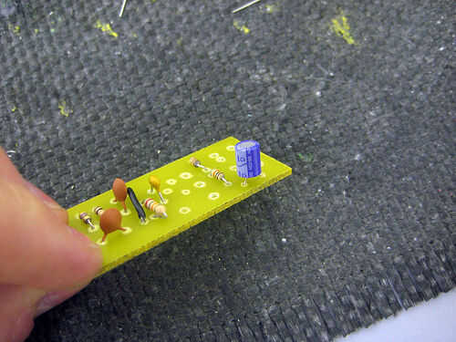 Empezar por soldar todas las resistencias. Seguir con todos los condensadores y el puente. Asegúrese de que el condensador electrolítico está orientado como se describe en el diagrama de diseño de circuito, el lado negativo de la toma.