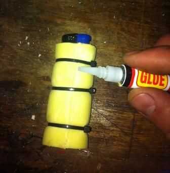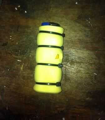 1. cortar un trozo de espuma para que quede firmemente alrededor del encendedor