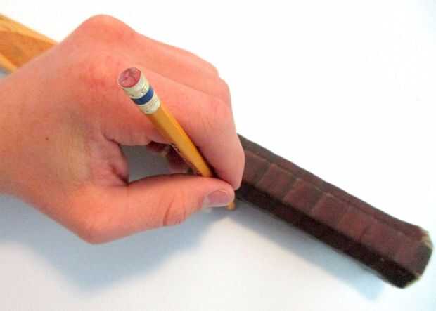 Comienzo sosteniendo su raqueta de tenis contra la pared. Yo quería mi raqueta para colgar en un ángulo, pero debería funcionar cualquier orientación. Utilizando un lápiz, haga una marca en la parte de agarre de la raqueta de tenis. Esto es donde se instalará el clavo pequeño. También marca un punto dentro de las cuerdas donde desea que su pelota de tenis que se encuentra. Esto es donde el tornillo.