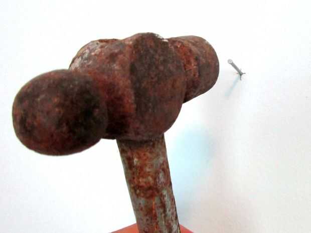 Ahora que han marcado los lugares adecuados, instale el pequeño clavo y tornillo. El clavo debe martillado en la pared para que aproximadamente 1" está pegando hacia fuera. Con un destornillador, introduzca el tornillo en la marca donde irá la pelota de tenis. El tornillo debe sobresalir aproximadamente 1/2". Prueba de los sujetadores con el dedo para que estén seguras.