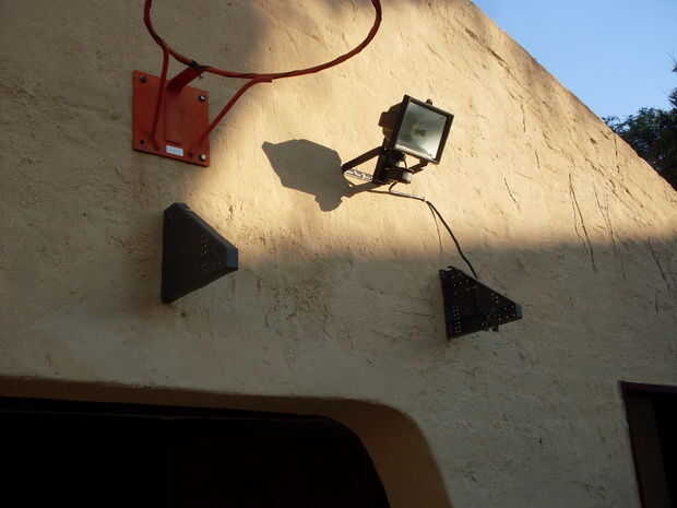 Solo por motivo de interés y contexto, estos soportes de herramienta taller colgante kit eran al revés y modificados para adaptarse a uno de los paneles. El panel solar ranurado entre estas escuadras y estaba todavía seguro sobre un año más tarde. No está mal para una goma de mascar y el juicio temporal de la cadena.