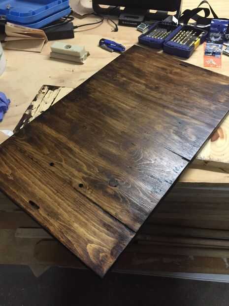opté por manchar la madera. Siempre me parece pensar que tengo que comprar más mancha temiendo no tengo ninguno pero ahora tengo un montón; un poco va un largo camino. Soy bastante nuevo en la coloración y me hizo nervioso pero no mala. Me gustaría sugerir la lectura en la coloración y asegúrese de que tiene lo que usted necesita antes de comenzar. Esto es no lo que hice y que hizo para un leve pánico cuando me di cuenta que no tenía buena trapos para limpiar la mancha, había a desordenar. El color utiliza terminó siendo más marrón que realmente quería y no sabía cómo jugaría de todas el color negro de la TV, PS, soporte de la TV y stand de controlador. Pero me gusta el look de ella total todos modos. Además, va a sentarse en la parte trasera de mi coche en un viaje para mis hijos. No mancha la parte inferior de la madera - esto me molestó al principio pero yo no quería una superficie manchada frotando alrededor de la parte posterior de la silla. Así que en lugar de ello, decidí montar algún revestimiento armario/cajón en la parte posterior. Esto ayuda a mantener su lugar pero también le dan un aspecto más acabado. Tenía el tipo incorrecto de los tornillos pero trabajaron - por ahora. Quería un noventa grados a la cabeza del tornillo, así que sería al ras y podría utilizar una arandela de latón debajo de él para ayudar a cubrir más del revestimiento del cajón y mantengan apretado mejor. Éstos tenían un enfoque inclinado a la cabeza (no sé los términos pero voy a intentar aprender más tarde, lo prometo, te lo juro jajaja).