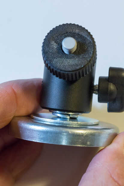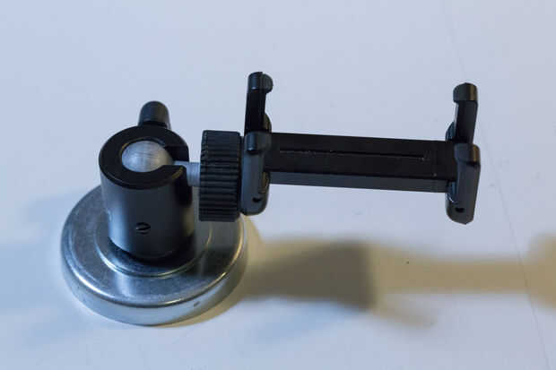 Lo que finalmente terminó con combina un imán, una cabeza de bola mini y un adaptador del trípode smartphone accionado por resorte.