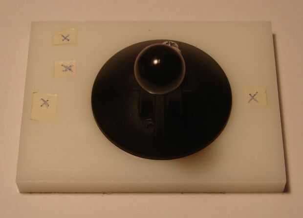 - el diámetro de la parte inferior del montaje del tablero de instrumentos es dos pulgadas a través. La base de montaje debe ser ligeramente más grande que el. Utilizando polietileno de alta densidad (un material plástico muy resistente) o un trozo de madera pequeño, cortar la pieza de trabajo a aproximadamente cuatro pulgadas x 4 pulgadas (o más si se prefiere).
