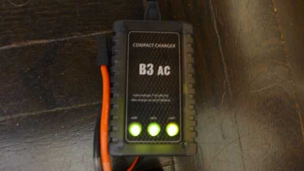 Cuando las tres luces en el cargador vuelva a verdes, la batería de LiPo está completamente cargada.