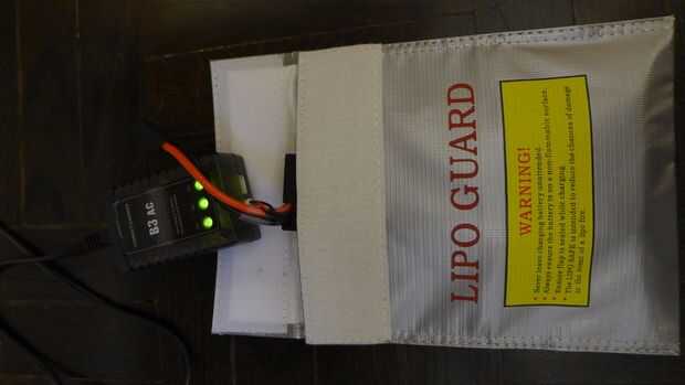 Cuando la carga de la batería de LiPo, coloque la batería dentro de la LiPo bolsa de carga. Esto ayudará a protegerle en caso de que la batería explote o coge en el fuego.