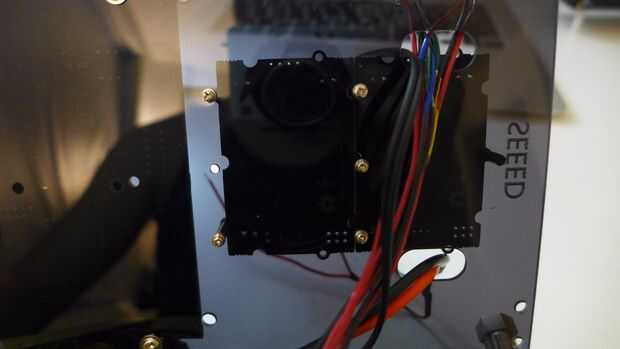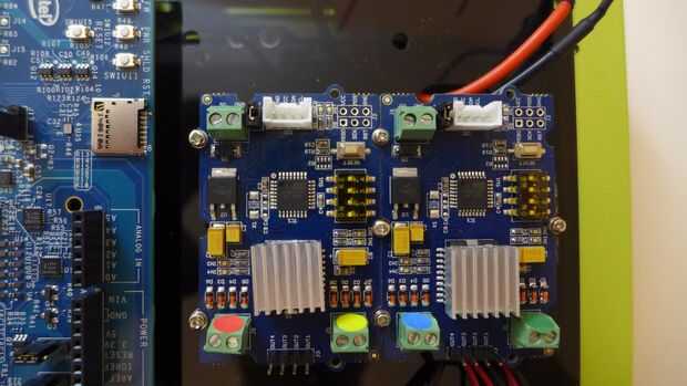 Antes de instalar la placa en el chasis de montaje de electrónica, poner los cables del motor y los cables de alimentación a través del orificio, como se muestra en la imagen. Observe la posición de los terminales del regulador del motor, será más conveniente para los cables del motor más.