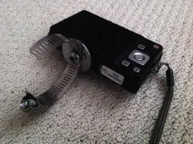 el accesorio del manillar de la cámara GoPro Hero HD es costoso y toma tiempo para poner en su lugar. Aquí es un reemplazo más barato que tiene también la ventaja de ser fáciles de ajustar.Te hace falta-uno del Monte plano adhesivo, proporcionado por