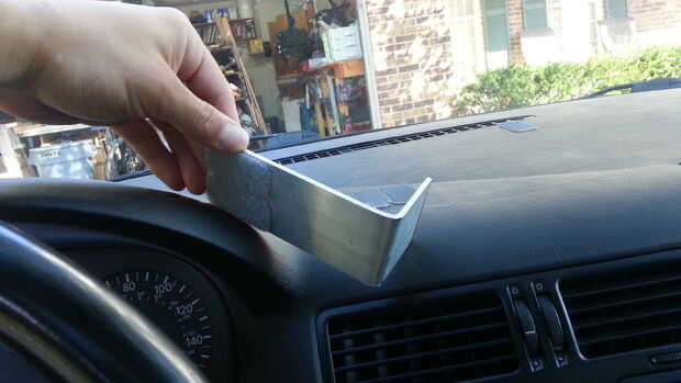 Su localización deseada dictará el tamaño y la forma de su brazo de montaje. Esto es algo que tendrás que jugar con y utilizar un poco de magia de fabricante. Me decidí por un voladizo en forma de L sujeto con fuerza industrial Velcro. La porción vertical debe ser al menos 2 "x 2" para encajar adecuadamente el clip binder. La porción horizontal variará.