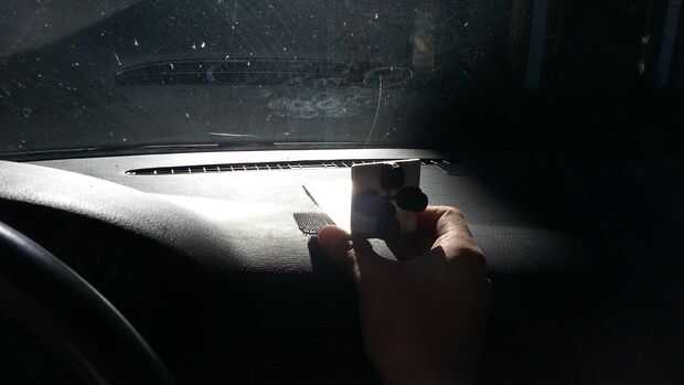 Mina está hecha de 1/8" espesor x 2" barra de aluminio amplia. Porción horizontal - ~ 6" largo, vertical de la porción de 2" x 2". Debate hacer el brazo de madera, acero y plástico, pero eventualmente se establecieron en aluminio porque tenía algunos poniendo alrededor. El aluminio es agradable porque se dobla fácilmente, sin embargo es brillante y arrojará el sol en tus ojos en el ángulo derecho. Terminé de pintar la parte superior de la mata de mina negro para mitigar esto.