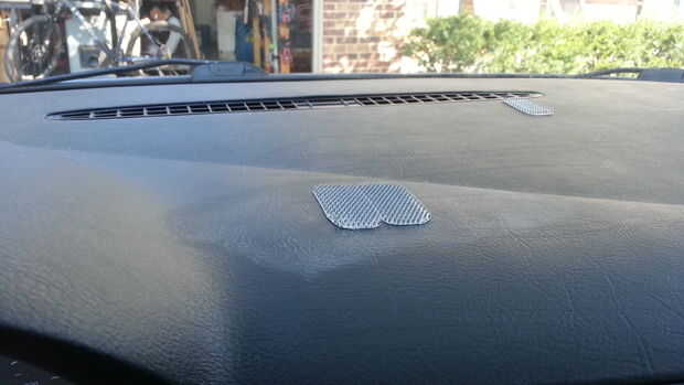 Yo utiliza fuerza industrial Velcro para sujetar mi Monte. Me gustó la idea de poder quitarlo. Si quieres una solución más permanente, epoxi, JB weld o tornillos podrían trabajar así. Recuerde preparar las superficies antes de cualquier adhesivo. Los coches son a menudo polvo o grasa en el salpicadero que hacen adhesivos menos eficaz. Agua y jabón o bien trabajo alcohol del frotamiento.