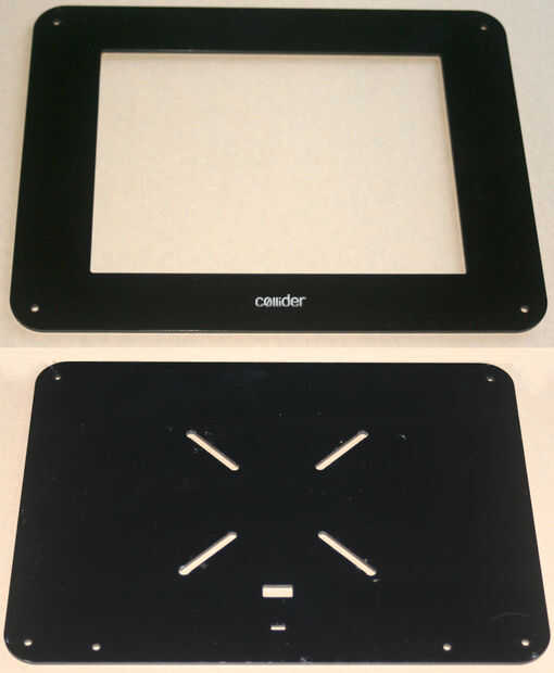 El corte rectangular grande en el centro vamos a alimentas con el cable USB si usted necesita alimentar el pad y el corte rectangular pequeño debajo de él está a Fije el soporte con un cable la seguridad como este. Por supuesto no es demasiado segura pero pueden dejar de oportunistas.