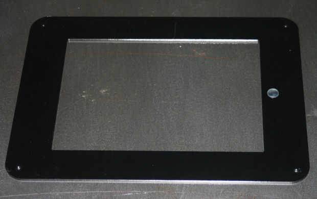 3-Ponga la pieza superior de acrílico en el iPad - no se olvide de Oriente correctamente para que el corte de la ventana y la pantalla coinciden.