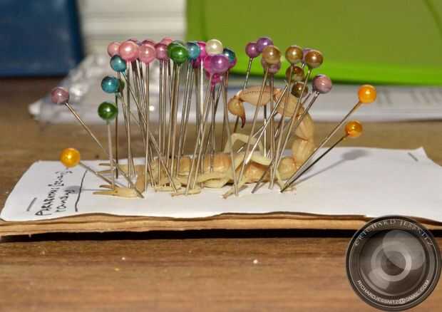 3. en ningún momento conducir un alfiler a través del cuerpo del escorpión, siempre ponga el cuerpo (y todos los otros bits) por fijación a ambos lados. Tenga cuidado que usted no accidentalmente pegar un pin a través de una pierna o algo así.