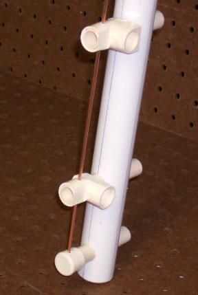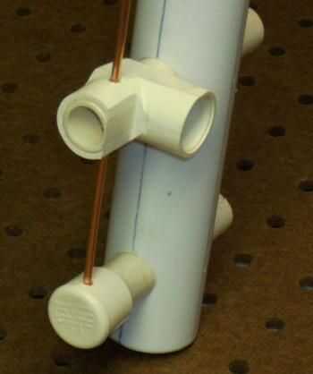 Diapositiva en el NARODs e instale las tapas de tubo perforado para plasmarlos en los extremos de la NAROD fin soporta, teniendo cuidado de no doblar las NARODs. (Este arreglo es obviamente overkill para apoyar la NARODs recta, sin embargo yo quería ser capaz de soportar también el opcional "tophat" NARODs, para los experimentos. Ver plástico artesanías Instructable para más detalles).