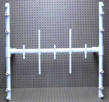 Insertar los cinco elemento apoya en columna vertebral de la antena, asegurándose de que el uno que el éstos de señal es el medio. Medida de posición por lo que los elementos activos instalados será la distancia especificada desde la línea central de los reflectores. Corte una que quepa entre el borde inferior de la campana de la tee CPVC a la superficie del tubo de columna vertebral de la antena establecer especifica distancia durante la cementación. Establecer marco de la antena en un banco para que una escuadra de carpintero puede utilizarse para asegurar que los soportes del elemento será instalada perpendicular al tubo de la espina dorsal de la antena. Usando el espaciador y cuadrado, cemento cuidadosamente cada elemento de soporte en su lugar.