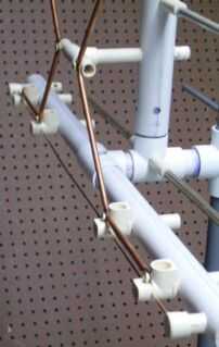 Ajuste el NAROD apoya para que todas las partes de los elementos activos se encuentran en el plano definido por los soportes del elemento pegado y ajustar el extremo NAROD apoya para que la NARODS sea recto. Las tapas CPVC y el NARODS y eliminar todos lo NAROD apoya por su profundidad y posición rotacional. Cemento el NAROD apoya en las posiciones y volver a instalar el NARODs. Cemento las cuatro tapas CPVC para limitar con cuidado la NARODS. Latón tornillos y tuercas y arandelas de bronce, para sujetar los extremos de los elementos activos a los soportes NAROD, con la cabeza del tornillo dentro de la tubería CPVC.