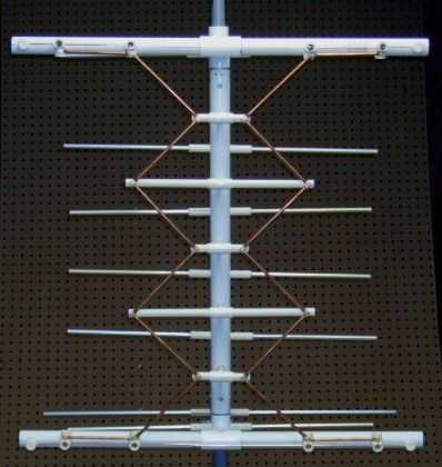El 6 (u 8 si se utilizan NARODs) barras del reflector están instaladas en longitudes de 5 pulgadas de tubo CPVC de 1/2 pulgada, sus longitudes y la brecha entre sus extremos, según la antena dibujo. Las tuberías CPVC se dan marcas que muestran que están centrados en la columna vertebral de la antena mientras se se cementan. Cemento las varillas en su lugar, asegurándose de que las longitudes están en las ubicaciones correctas. PEX es dañado fácilmente por la luz solar. Si la antena es para ser montado al aire libre, perfore un orificio de 3/8 de pulgada de diámetro a través de los centros de 1/2-pulgadas casquillos de la pipa CPVC y pegamento uno a cada extremo de cada tubería CPVC de reflector cuando los reflectores se instalan en la antena.