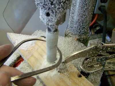 Quería mantener mi top incluso de corte hacia abajo. Revisé mi trabajo a menudo con una pinza. Me he convertido un par de bolígrafos de madera, pero nunca con el acrílico como el cañón. Erró en el lado de eliminación de poco material con herramientas de corte áspero, como una Dremel, así sería cierto tener suficiente material para pulir al final sin socavar.