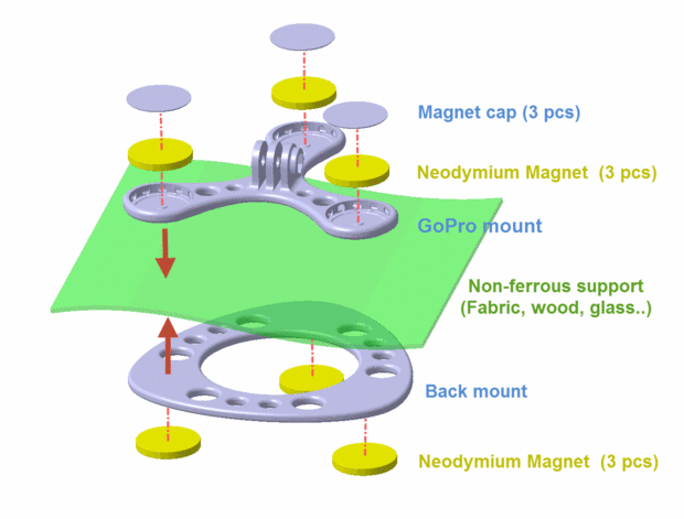 Este inescrutable podría ayudarle a montar cualquier modelo de GoPro cámara en su ropa, paredes, ventanas, mochila, parapente, kite, velas, coche, barco, motocicleta...